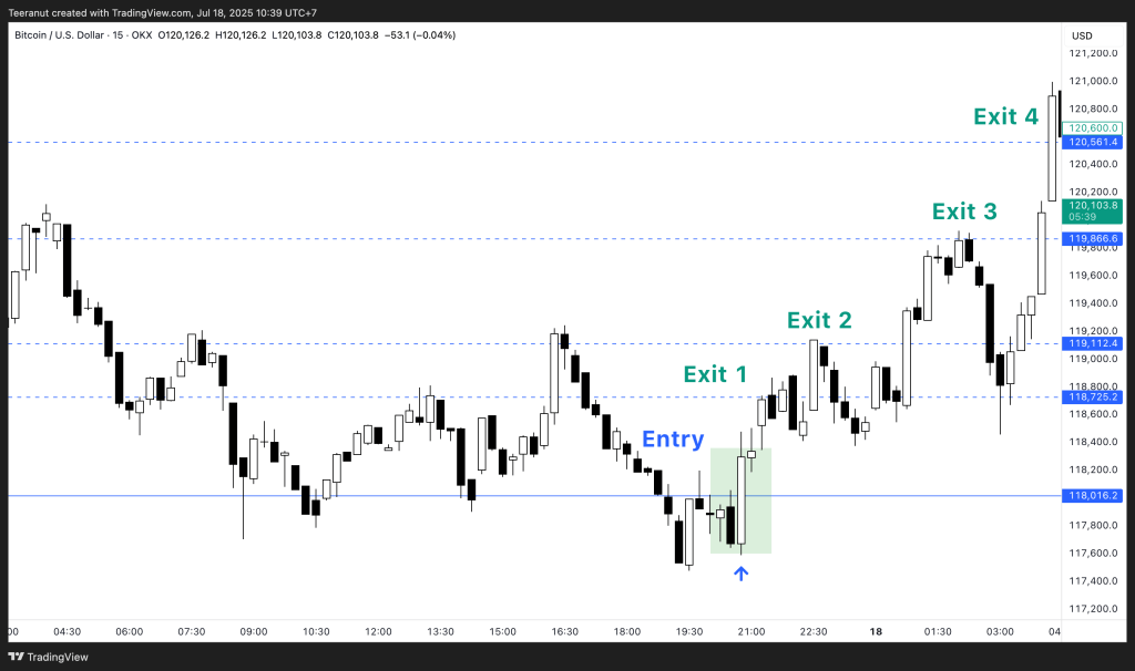วิธีการ Entry position ด้วยการ Breakout และ Stoploss ที่ Low at 117.5K ท่าปกติ